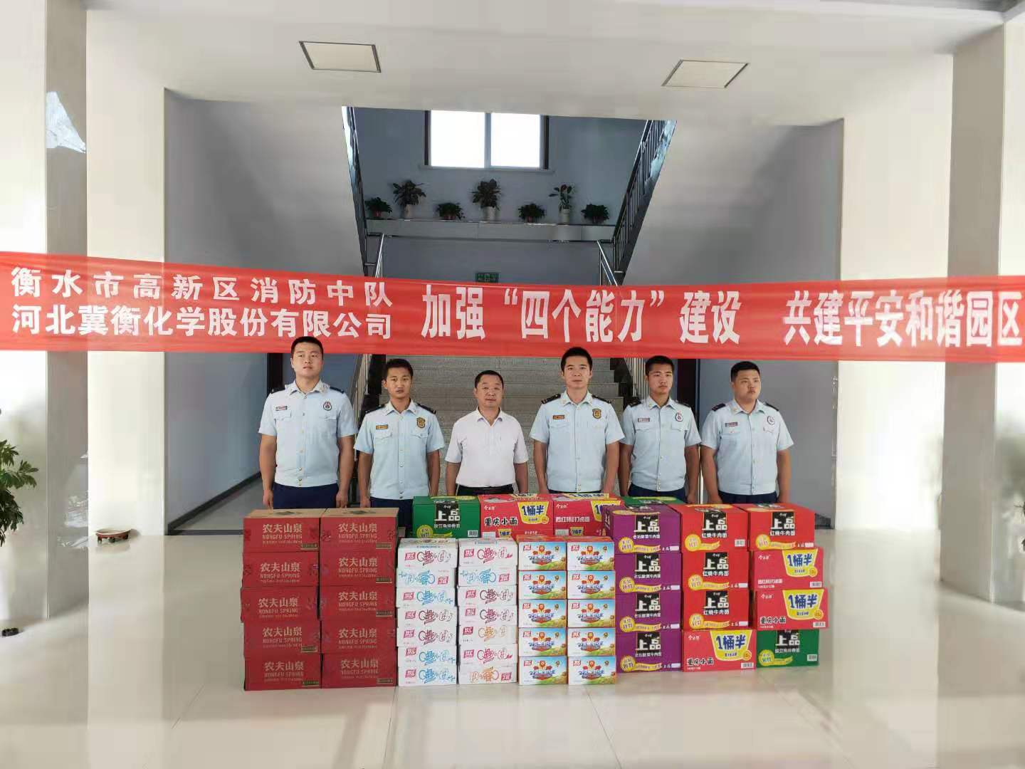 7月31日下午,我公司安全管理部曹云輝主任代表公司領(lǐng)導(dǎo),走訪慰問了衡水市高新區(qū)消防中隊(duì)官兵,并送去了飲用水等防暑降溫物品, 盡顯了軍民魚水之情。在慰問中曹主任對消防中隊(duì)官兵對冀衡化學(xué)給予的大力支持和幫助表示衷心感謝,冀衡化學(xué)作為消防重點(diǎn)單位,各項(xiàng)工作得到了市、區(qū)消防支隊(duì)和大隊(duì)的服務(wù)及指導(dǎo),雙方多次進(jìn)行消防演練,共同提高消防應(yīng)急協(xié)作能力,希望在今后的工作中繼續(xù)保持良好的警民合作共建關(guān)系,互相支持,互相合作,進(jìn)一步加強(qiáng)“四個(gè)能力”建設(shè),共同建設(shè)和諧平安園區(qū)。