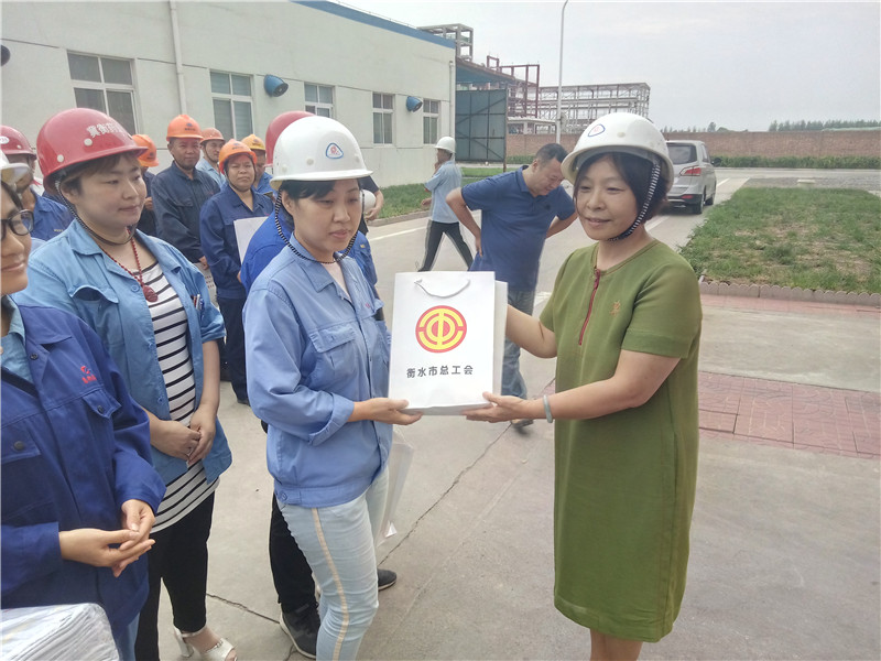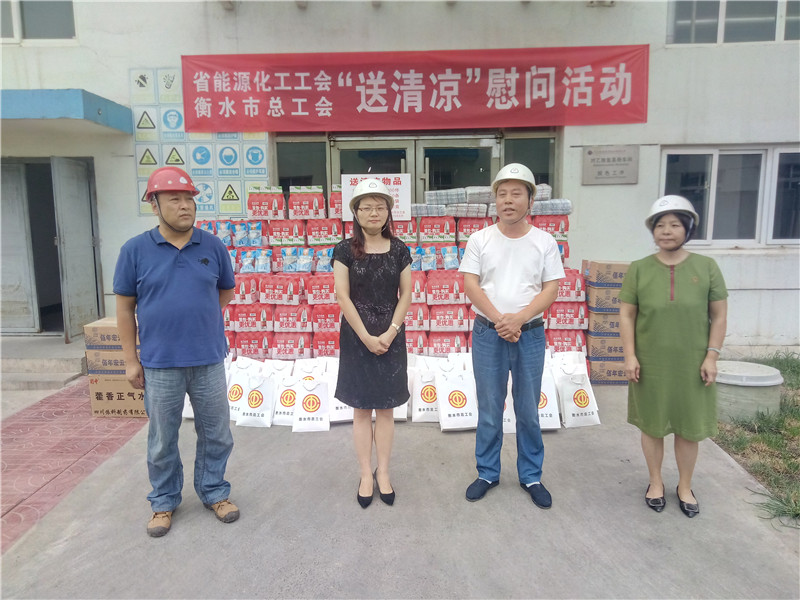8月22日,衡水市總工會黨組成員、經審委員會主任劉莉,經審辦主任楊新宇代表省能源化工工會、市總工會到冀衡集團開展“送清涼”慰問活動,集團工會主席韓紅喜接待了慰問組成員一行,在慰問活動現場,上級工會領導對我集團職工戰高溫、斗酷暑,不畏困難的精神表達了敬意,并為大家送上礦泉水、毛巾、冰糖、藿香正氣水等防暑降溫慰問品,讓高溫下堅持生產的職工們親身感受到了上級工會組織的關愛,大家表示一定要努力工作,為企業發展做出更大的貢獻。